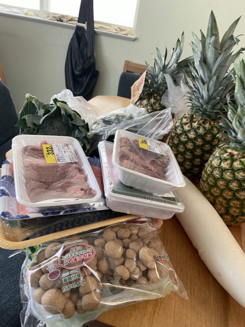 みかんも安かったのですが、実はパイナップルもおすすめ!黄色くなってきているやつが甘くて美味しいのでおすすめです。