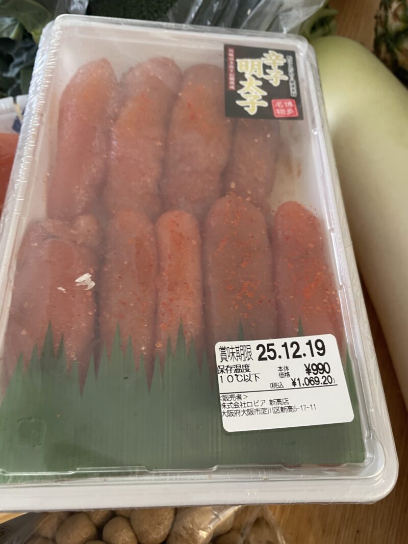 辛子明太子990円ですが2パックで1590円。1パック990円でも安いのに。明太子大好きなので買って冷凍です。